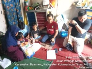 Baamang (09/05/2024) Camat Baamang Sufiansyah, SE berserta Lurah Baamang Barat meninjau langsung ke kediaman Yuliantin warga kecamatan baamang yang hidup memprihatinkan dengan 4 orang anak yang bertinggal dirumah kayu yang tak layak huni di jalan wengga metropolitan,sampit. Dalam Kesempatan tersebut Camat baamang menyerahkan bantuan berupa sembako dan bantuan lainnya yang diharapkan dapat meringankan sedikit beban yang dihadapi, adapun bentuk perhatian dan bantuan dari camat baamang beserta masyarakat setempat untuk membantu membangun tempat tinggal sementara yang lebih layak di tanah pribadi camat baamang diharapakan dengan kegiatan ini semoga menjadi amal kebaikan untuk kita semua dan selalu peduli kepada sesama.